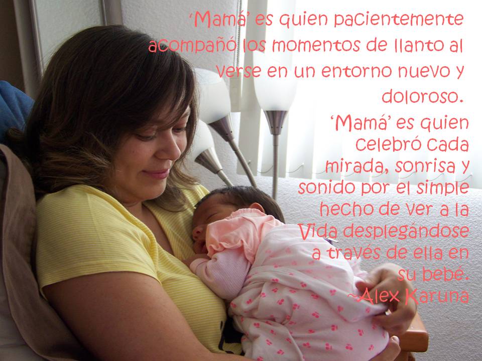Cuando el niño(a) dice por primera vez ‘Mamá’, lo hace no como una referencia racional sino espiritual. ‘Mamá’ es el ser que lo cuidó durante meses en su vientre. ‘Mamá’ es quien pacientemente acompañó los momentos de llanto al verse en un entorno nuevo y doloroso. ‘Mamá’ es quien celebró cada mirada, sonrisa y sonido por el simple hecho de ver a la Vida desplegándose a través de ella en su bebé.