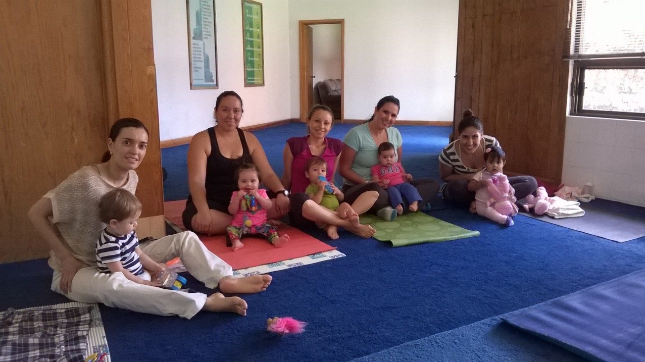 Me gustaría señalar que aunque exista una hora y un día establecido para la práctica de yoga una vez que mami y baby se familiarizan con el yoga y sus prácticas pueden hacer yoga en cualquier lugar y desde una práctica de 2 minutos hasta una hora.