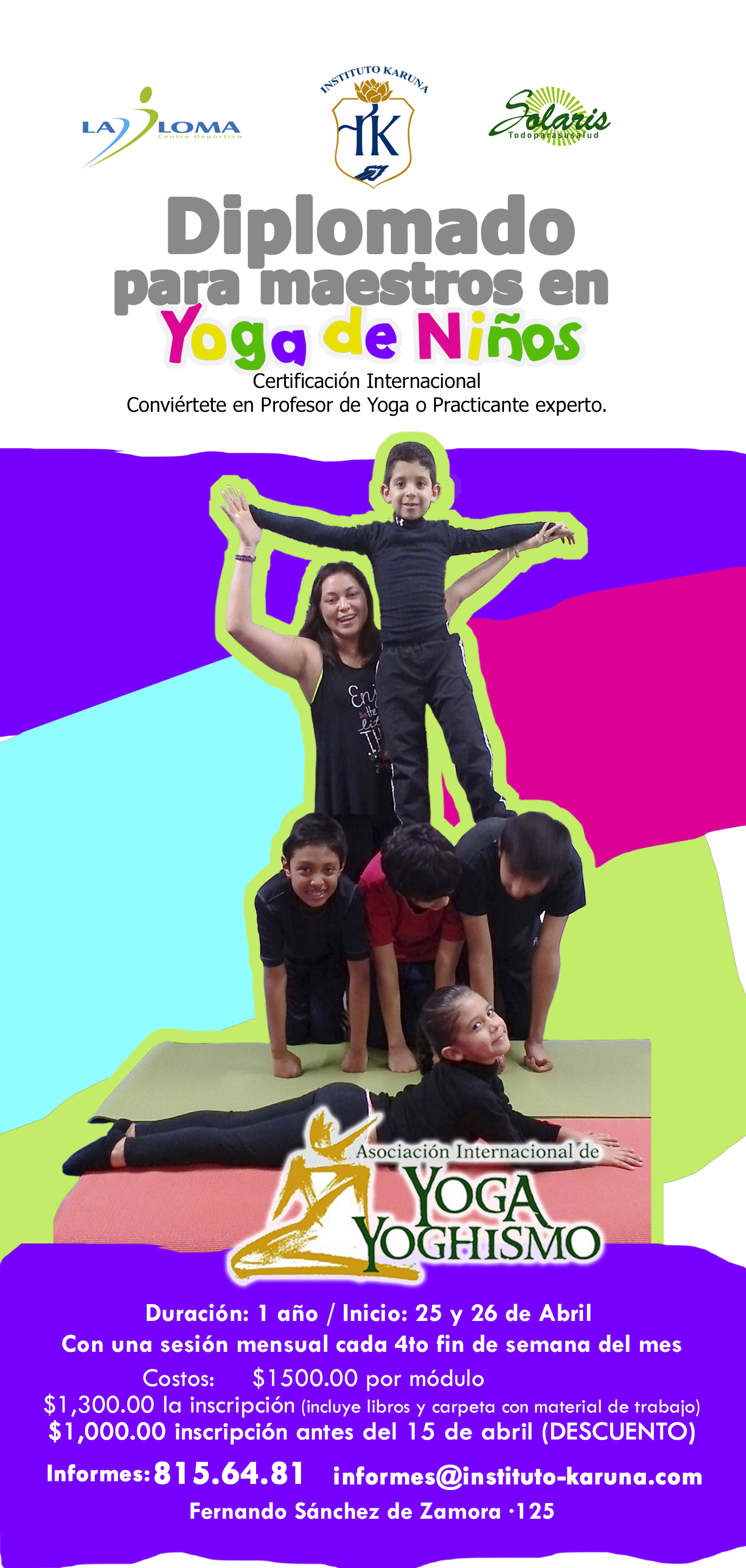 Capacitación teórica y práctica para dar clases de yoga para niñas y niños de entre 4 a 12 años de edad, dentro de la tradición del Yoghismo.