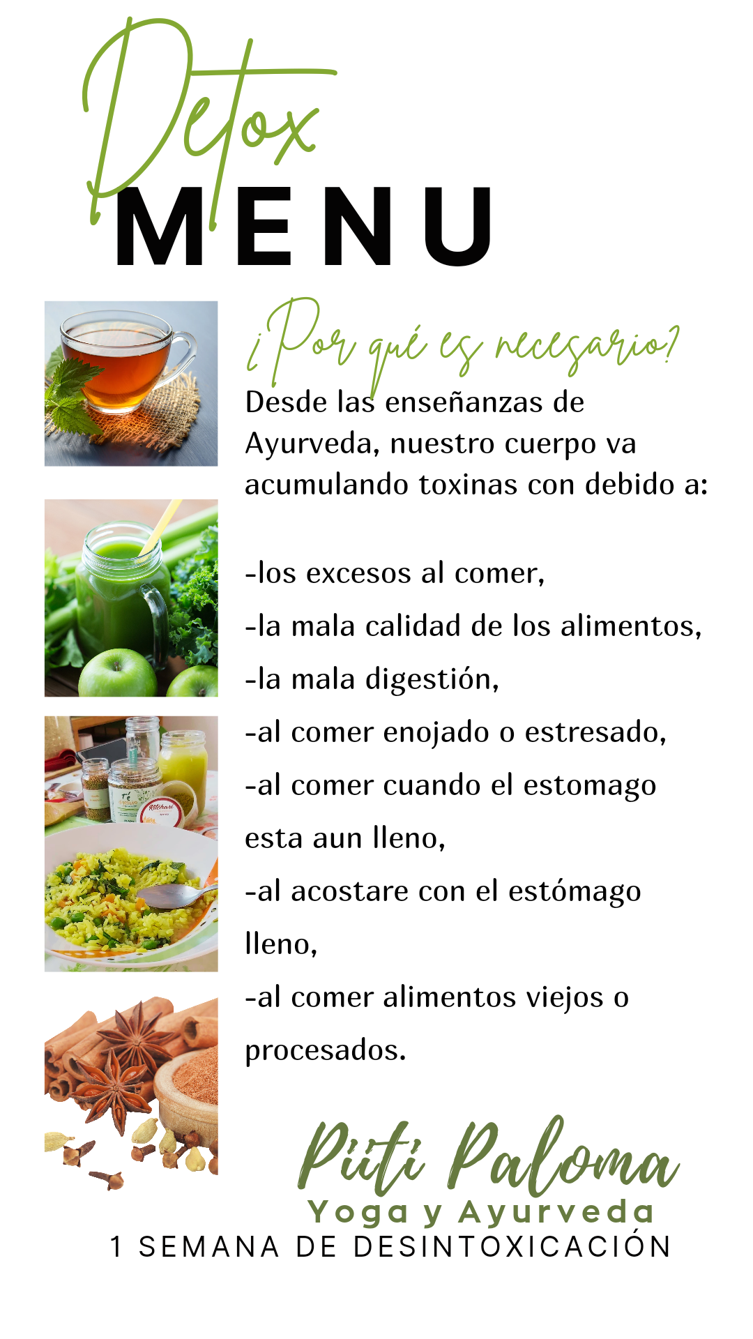 La palabra détox significa hacer una limpieza o eliminación de toxinas en nuestro cuerpo. Aunque es una práctica novedosa Ayurveda lo ha promovido hace miles de años como una técnica de rejuvenecimiento.