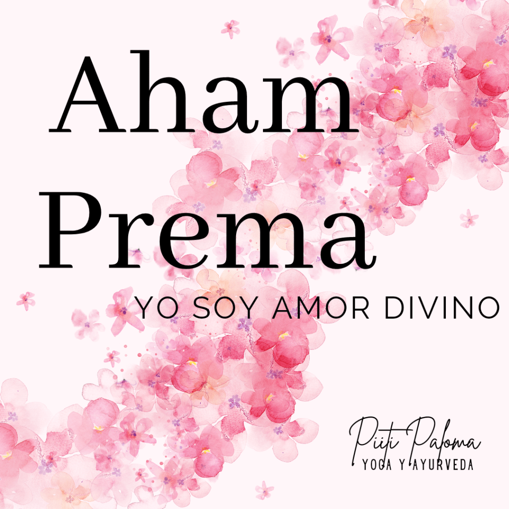 Este mantra lo podemos traducir como yo soy amor divino. Aham significa ‘yo soy’, y la palabra Prema significa ‘amor’ no solo el amor humano, el amor universal, el amor que es la esencia de la conciencia cósmica.